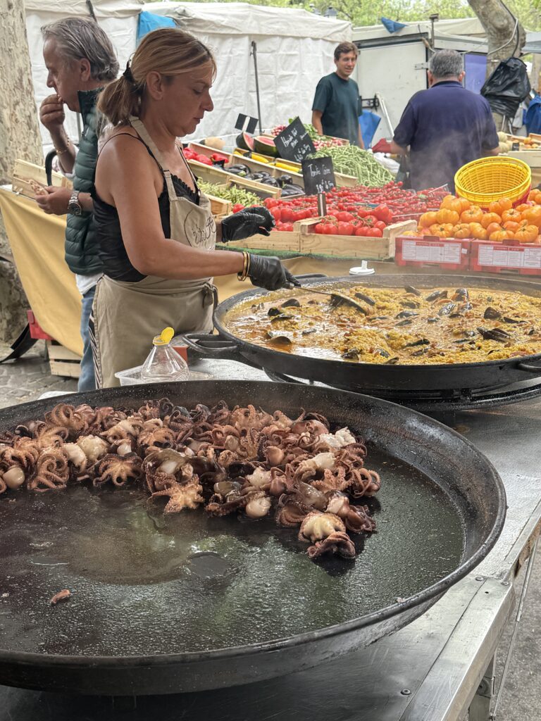 Wednesday mornings in this town mean one thing: the dockside market stretching along the port in a swirl of color, scents, and irresistible treats. Local cheeses, fresh produce, honey, warm pastries, and bread – it’s a feast for the senses, and we loved sampling everything. And it wasn’t just food – clothing, shoes, jewelry, even mattresses were on offer!