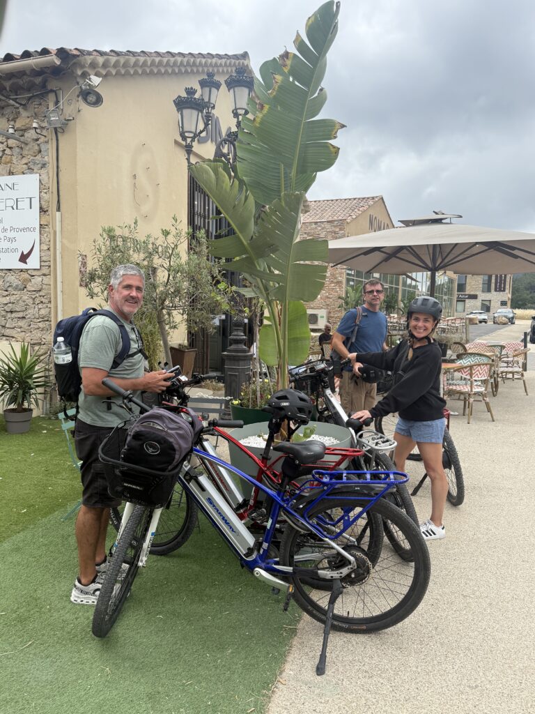 Fueled by croissants, we grabbed bikes and pedaled the coastal route to Bandol, a stunning ride with sea views. The ride from Bandol up to the wineries proved to be quite the adventure! Electric bikes helped with the ascent, but let’s just say the road was shared with cars, motorbikes, trucks, and one particularly aggressive dump truck that thought we were Tour de France contenders. Slightly terrifying, definitely unforgettable.