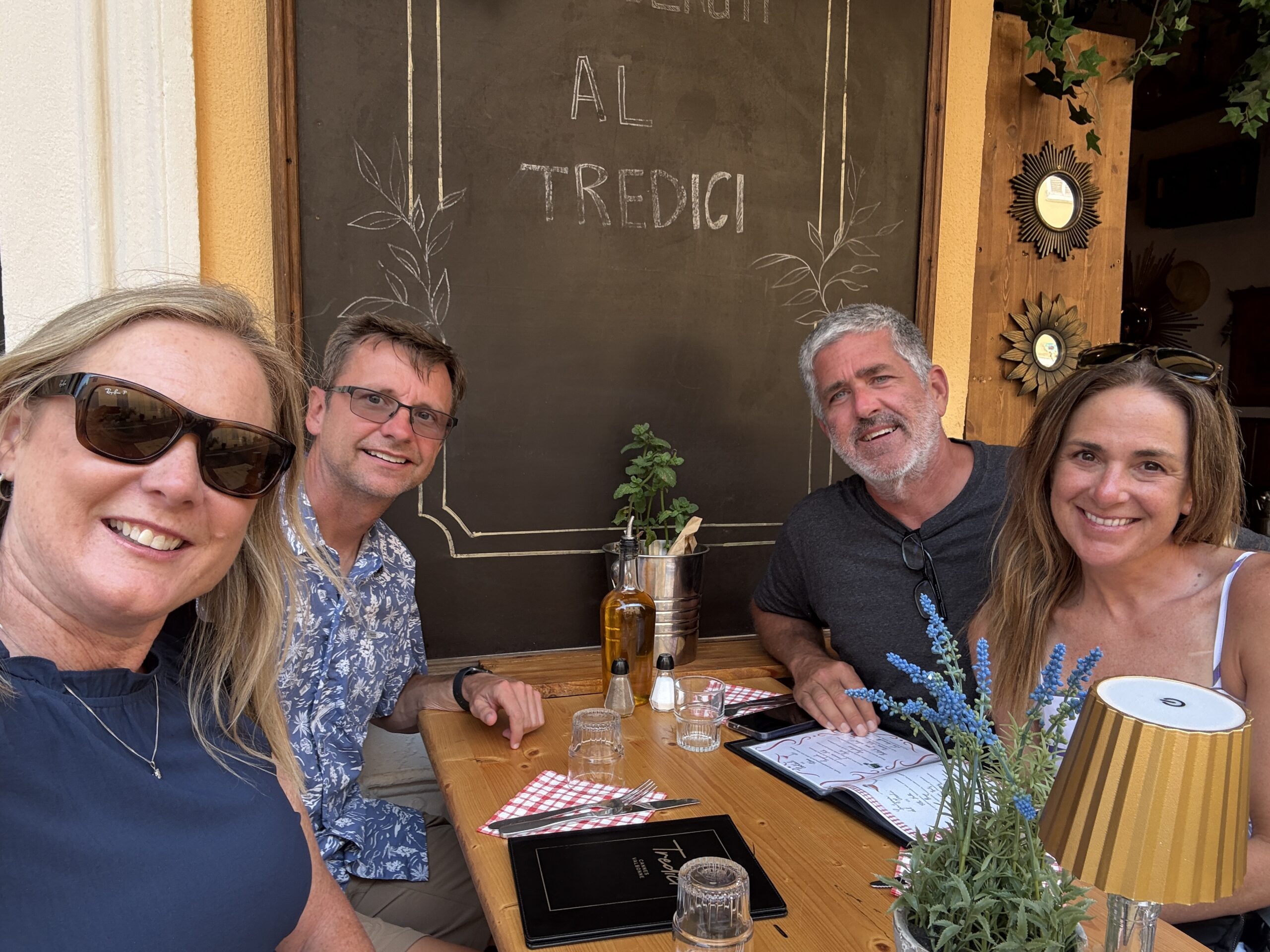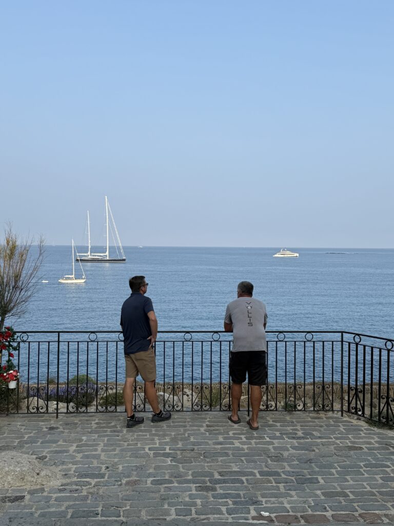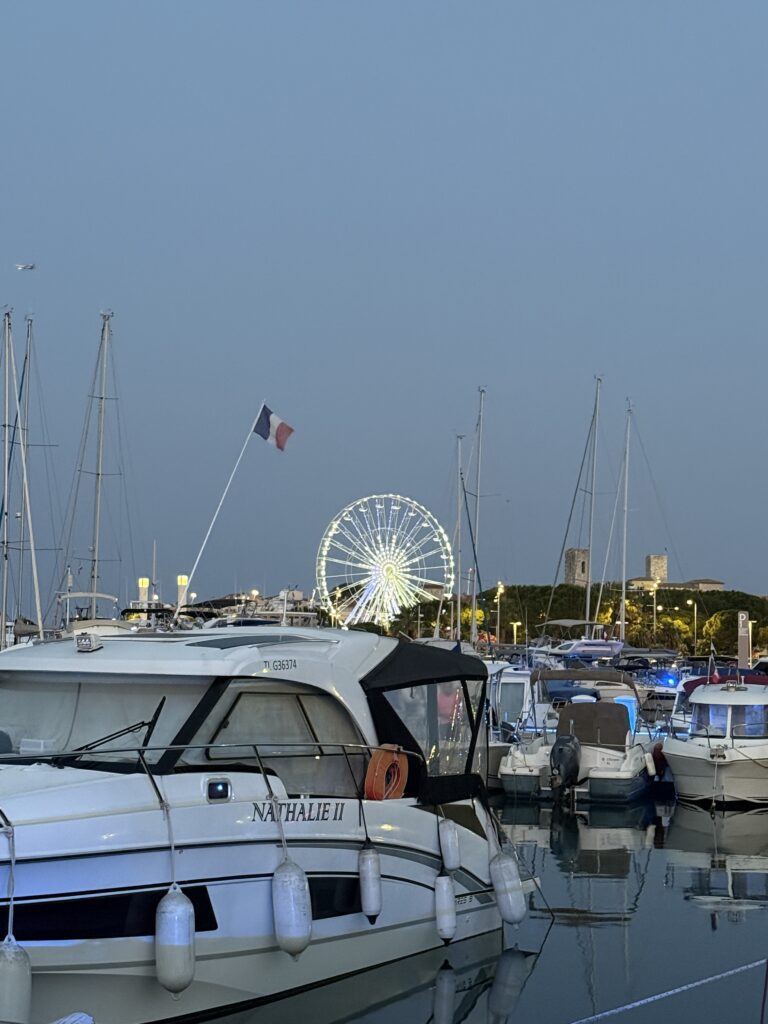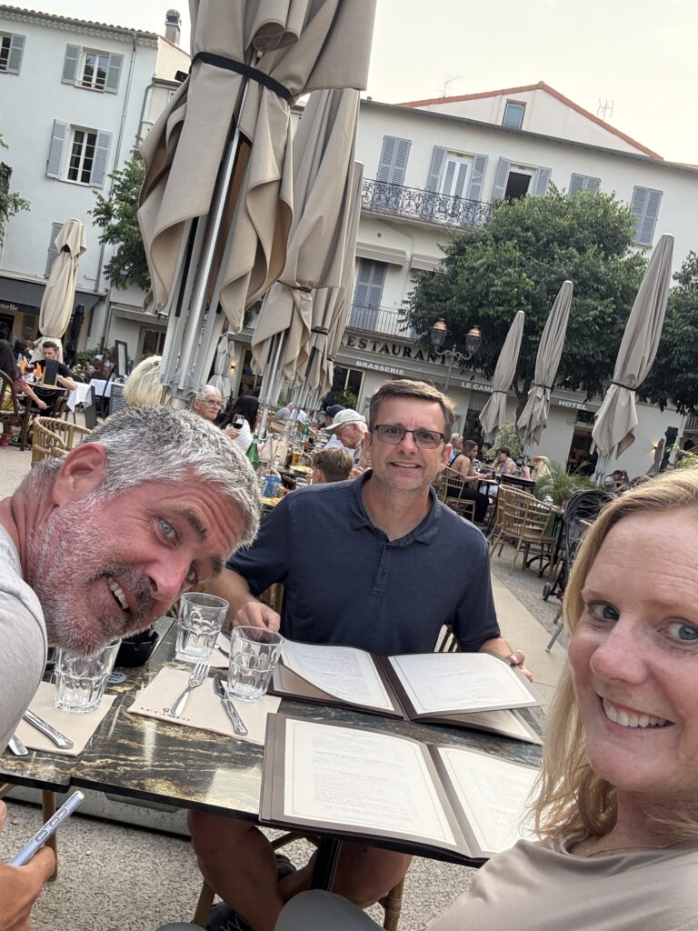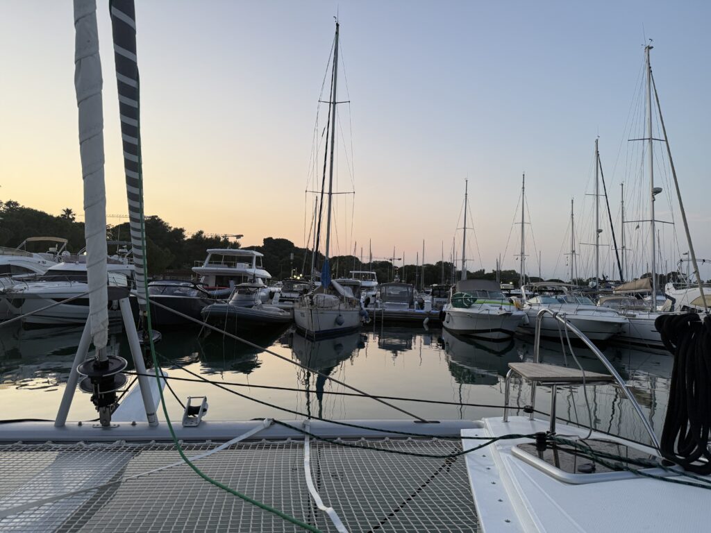 We ended the night with a lively dinner in a bustling square of medieval Antibes – music in the air, voices echoing off the stone walls – though it wasn’t quite complete without our fourth crewmate at the table. Then one last sunset in Antibes.