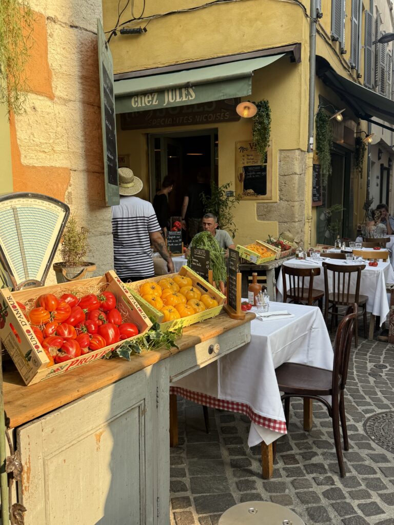 The rest of the morning and early afternoon was filled with classic boat life: scrubbing decks, laundry, a quick grocery run, and a dash of exercise to balance out the cheese and wine. But the real gem came afterward: Old Town Antibes in the early evening. With the cruise ships gone, a calm settled over this medieval town and it was such a pleasure to explore. We wandered the alleyways, admired the pastel shutters and flowering vines, listened to live music on the streets, and breathed in the scent of Provençal dishes wafting from the local restaurants. We climbed the ramparts and looked out over the sea, soaking in the views and enjoying the soft sea breezes.