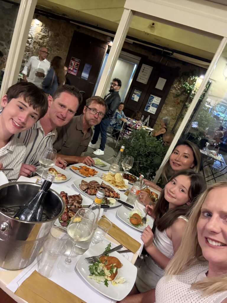 We wrapped up our evening with a stroll through the charming old town, where we saw children selling trinkets on stone steps and a local author holding court with readers outside a bookshop. I couldn’t catch the conversation (I’m still working on my Italian), but the vibe was… quietly cinematic.