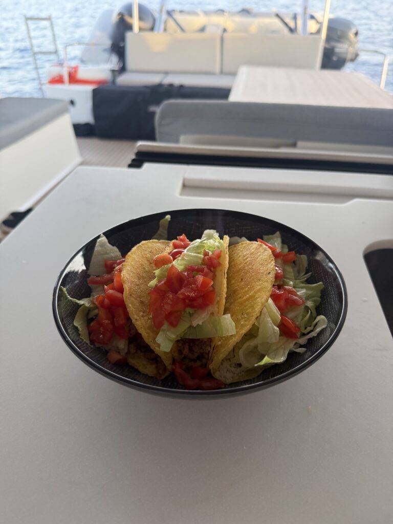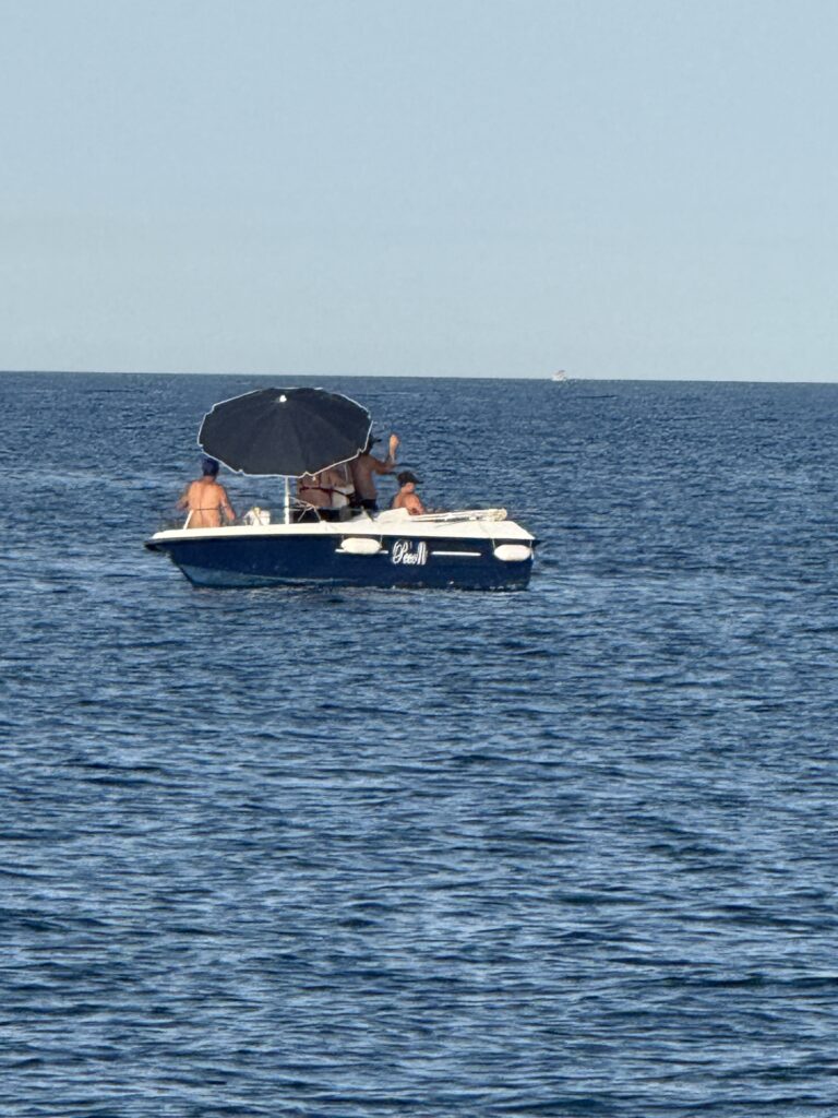 Like many sailors before us, we made a beeline: first to Crotone (an ambitious 122 NM overnight sail that took 25 hours), then onto Santa Maria di Leuca (72 NM, this time 14.5 hours). That second arrival was a dream – 9pm drop of anchor into 25 feet of clear, sandy bliss, lit beautifully by our underwater lights. The kind of moment that feels like the sea is on your side.