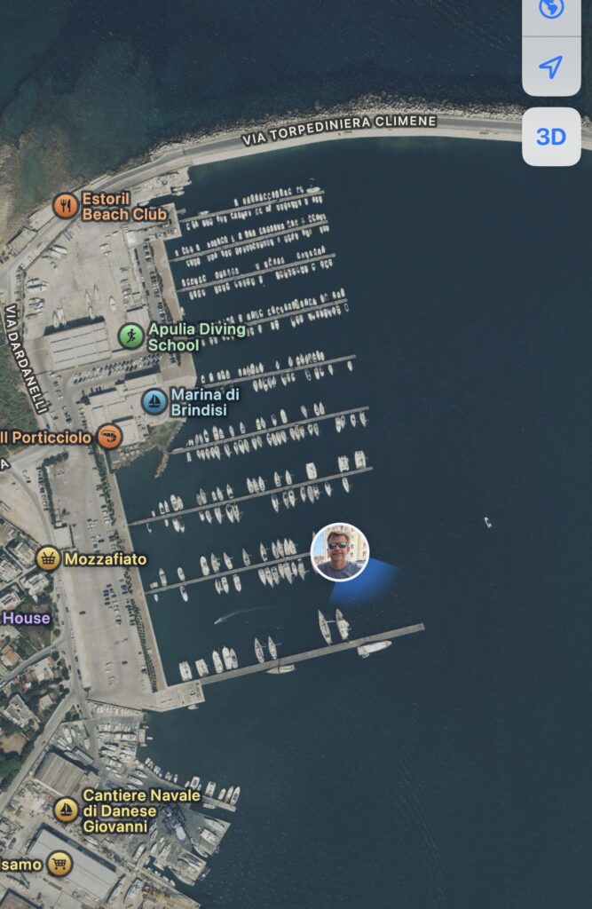 We spent just one night in Brindisi, enjoying a well-earned dinner ashore and listening to live music drifting through the piazza. Grateful for our safe passage so far, we mapped out the next leg of our journey – hoping for fair seas ahead.