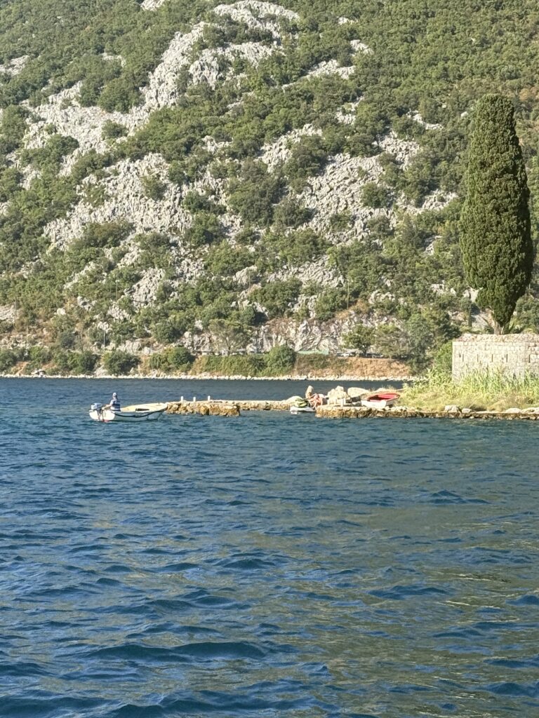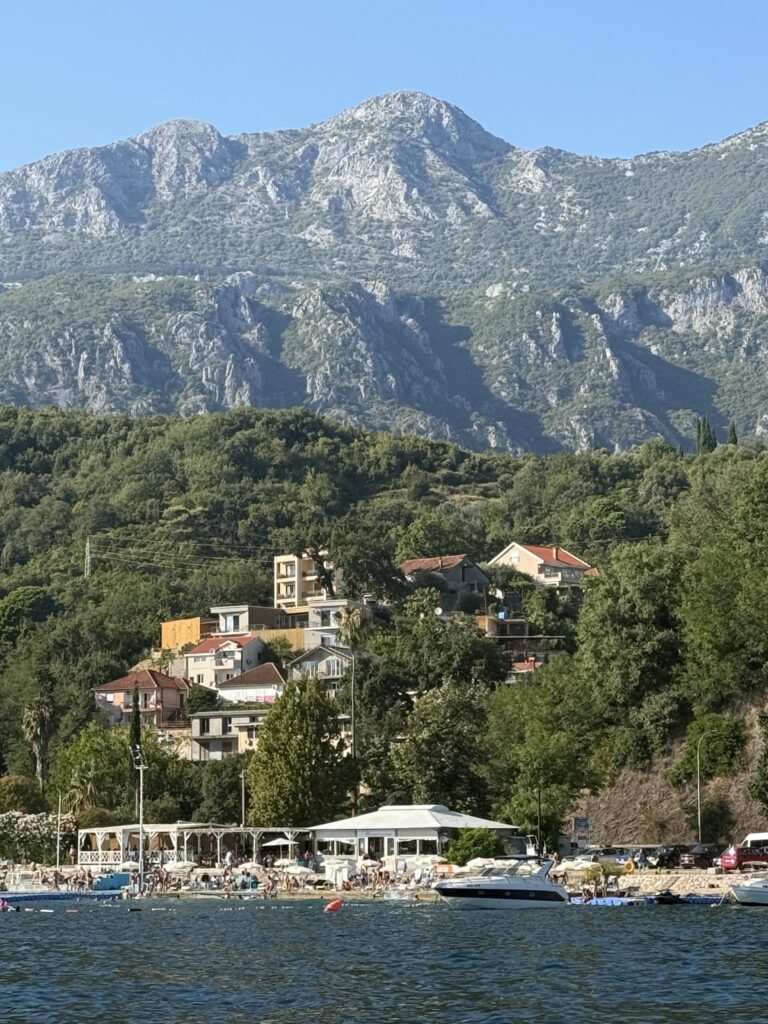 Over the past two days, we downshifted just a little bit more in Montenegro’s sweet spot: Tivat Bay and the Boka Kotorska fjords. We floated from Uvala Ljuta to Morinjski Zaliv, enjoying the peaceful days and picturesque limestone mountains that make up the fjords, then on to Zelenika – cruising calm waters, reading books, bingeing podcasts, and paddleboarding with just the slightest motivation. We even got the laundry done. It was blissful – and just the pause we needed before crossing borders again. The yellow stars in the map below highlight our final two days in Montenegro, while the orange stars mark some of our earlier stops along the way.