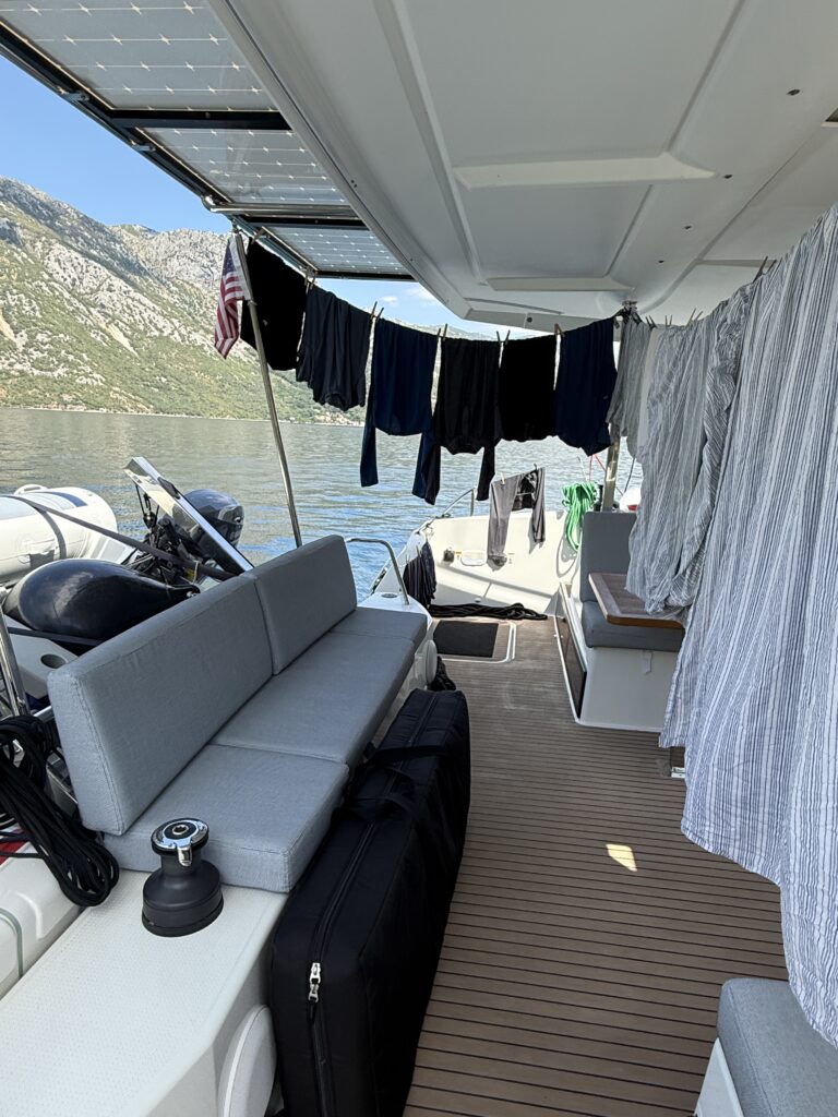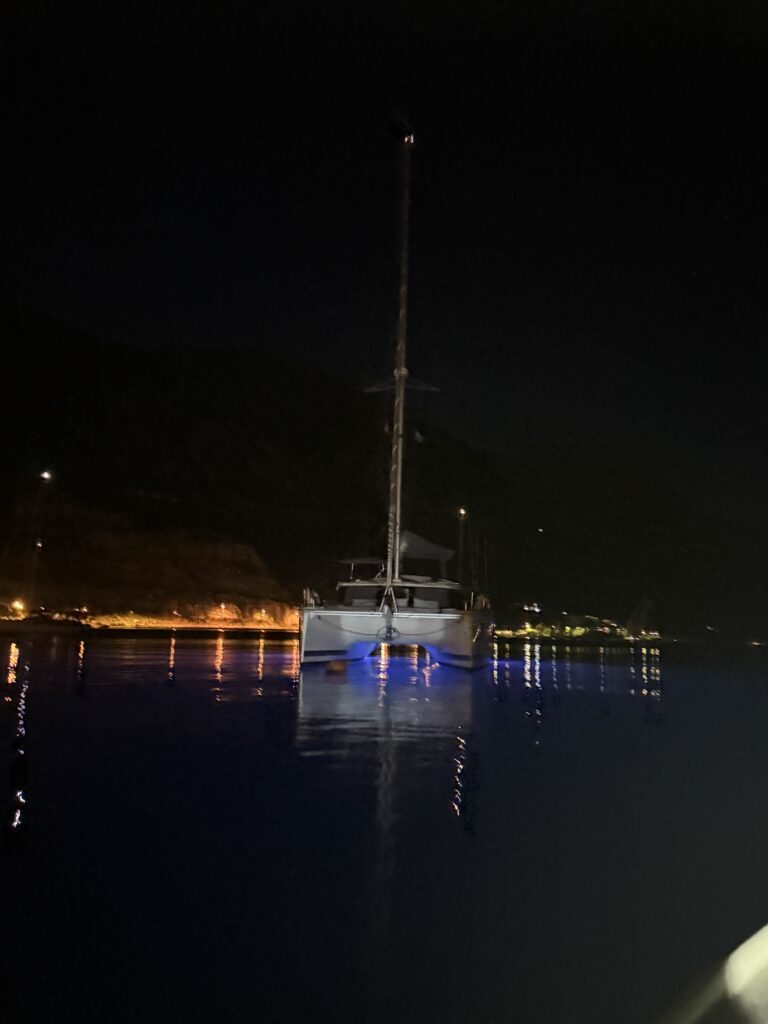 After dinner, we returned to Kora under cover of night, her soft underwater lights casting a welcoming glow in the dark. Just as we settled back aboard – around 9:23pm – fireworks burst into the sky once again. Always some strange number of minutes past 9 pm. Every time. Still no clue why… but it felt like Montenegro’s way of saying goodbye.