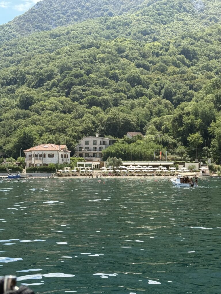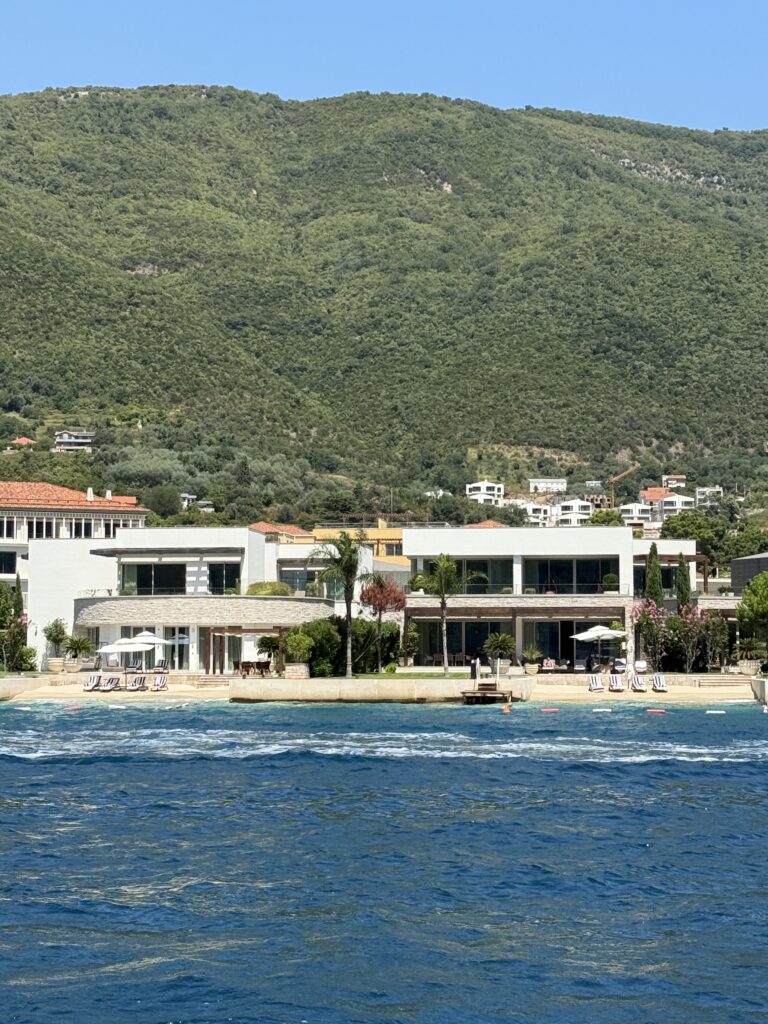 Before making our final stop in Zelenika to check out of Montenegro on August 4th, we couldn’t resist one last slow cruise past the dreamy beach houses near Tivat – private coves, walk-out beaches, and balconies made for morning coffee or a sunset glass of wine with a sea breeze. Imagine calling that home base while sailing the Med!!!